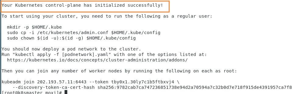 注意,以下的命令是在 master 初始化完成后,每个人的都不一样!!!需要复制自己生成的!