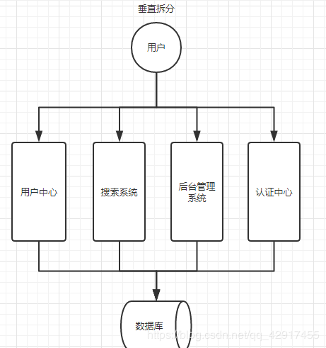 当访问量逐渐增大,单一应用无法满足需求,此时为了应对更高的并发和业务需求,我们根据业务功能对系统进行拆分。